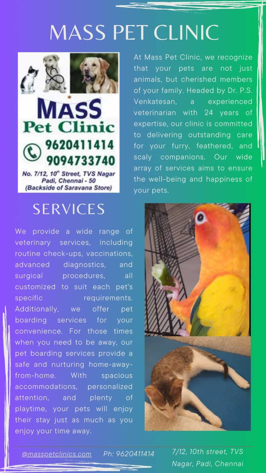 "One of the Best Pet Clinic In Chennai.. Where Our Pet's are in Safer Hands.. The Doctor and Staff are very much caring and concerned about our Pets..🐕🐕 …."